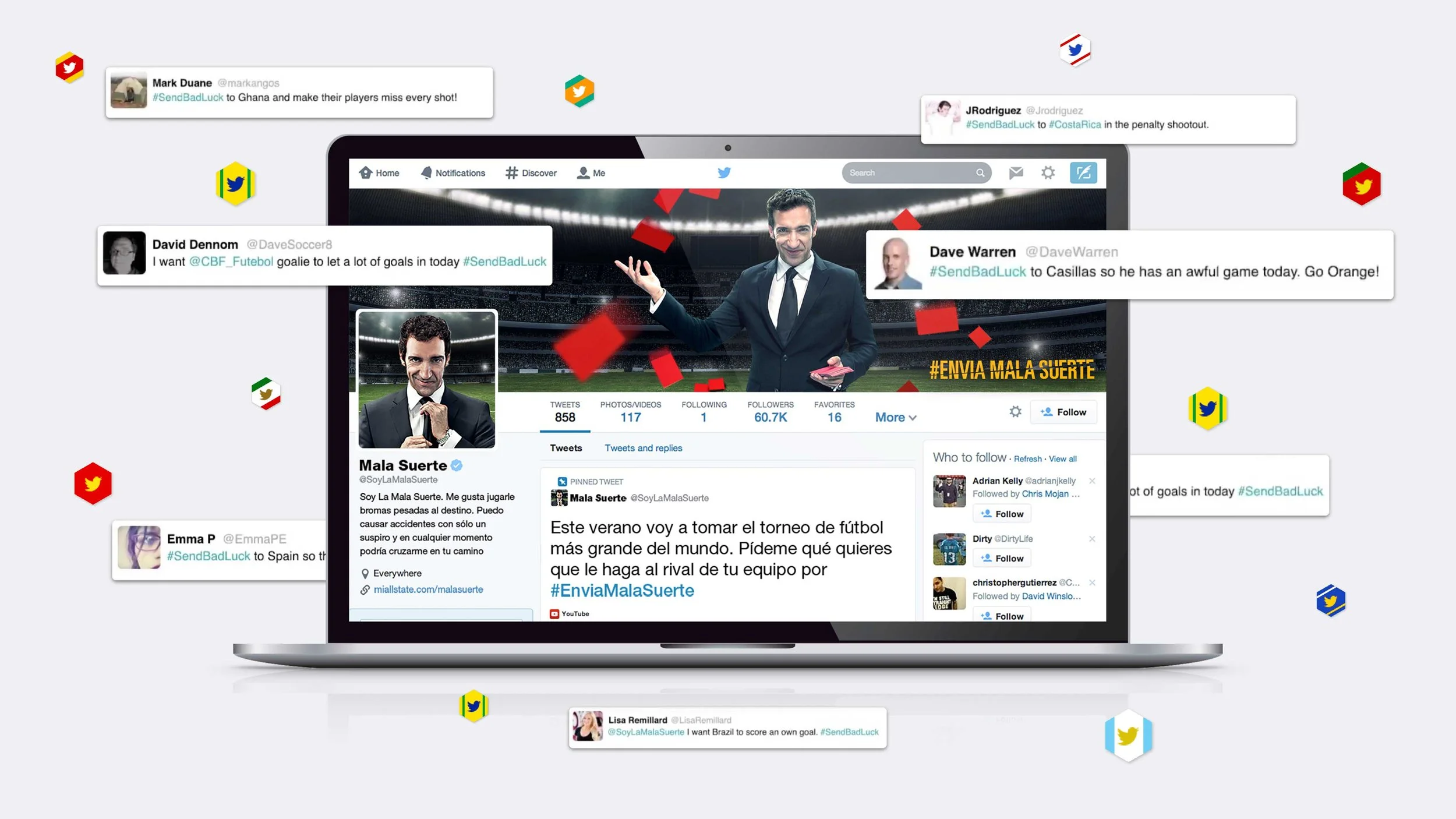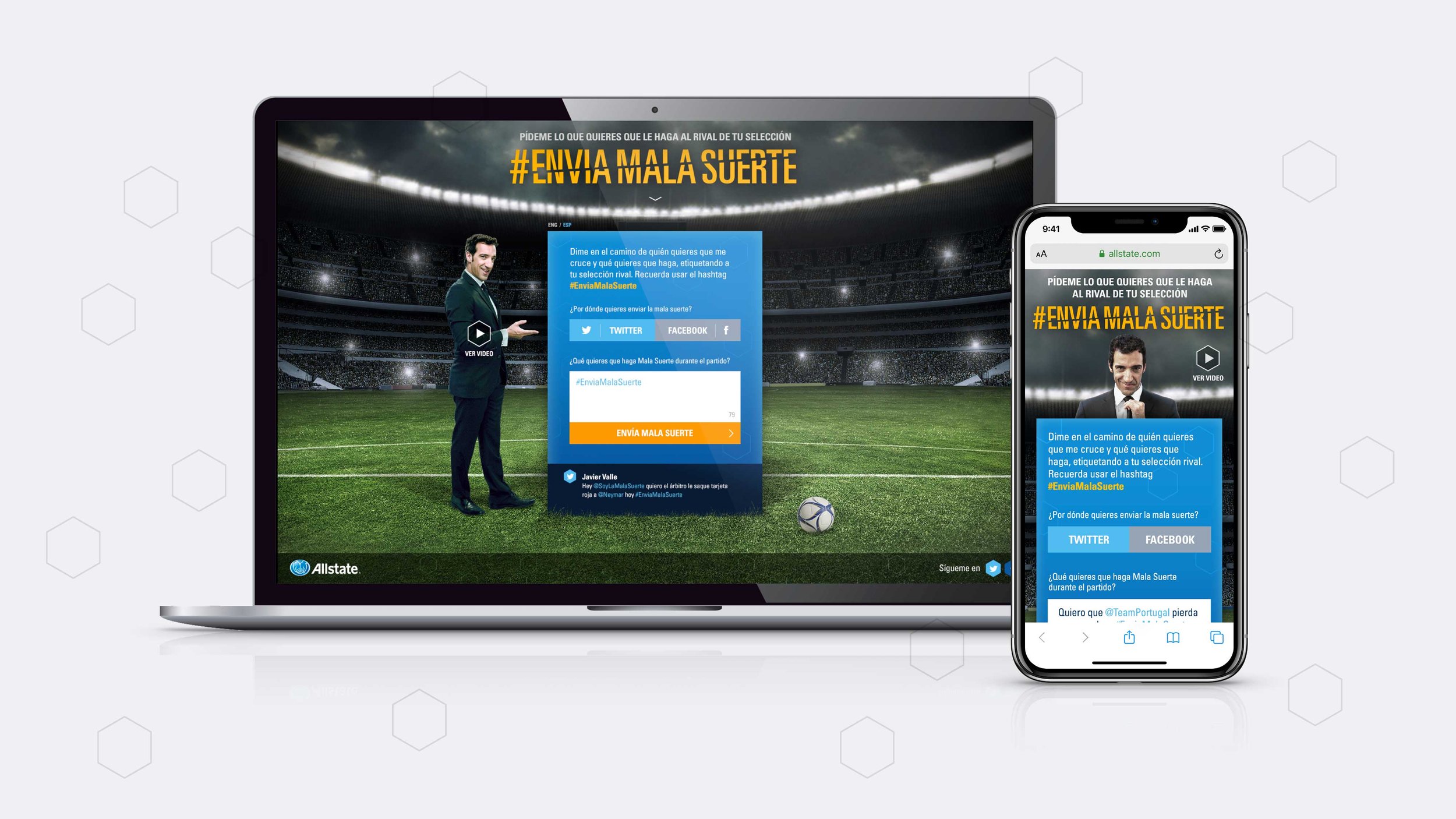 Leo Burnett Interactive and Lapiz collaborated to launched an integrated social campaign that put Allstate on everyone's lips during the World Cup. You could “Send Bad Luck” to your rival teams with a simple tweet using #EnviaMalaSuerte, and Allstate would make your wishes come true.