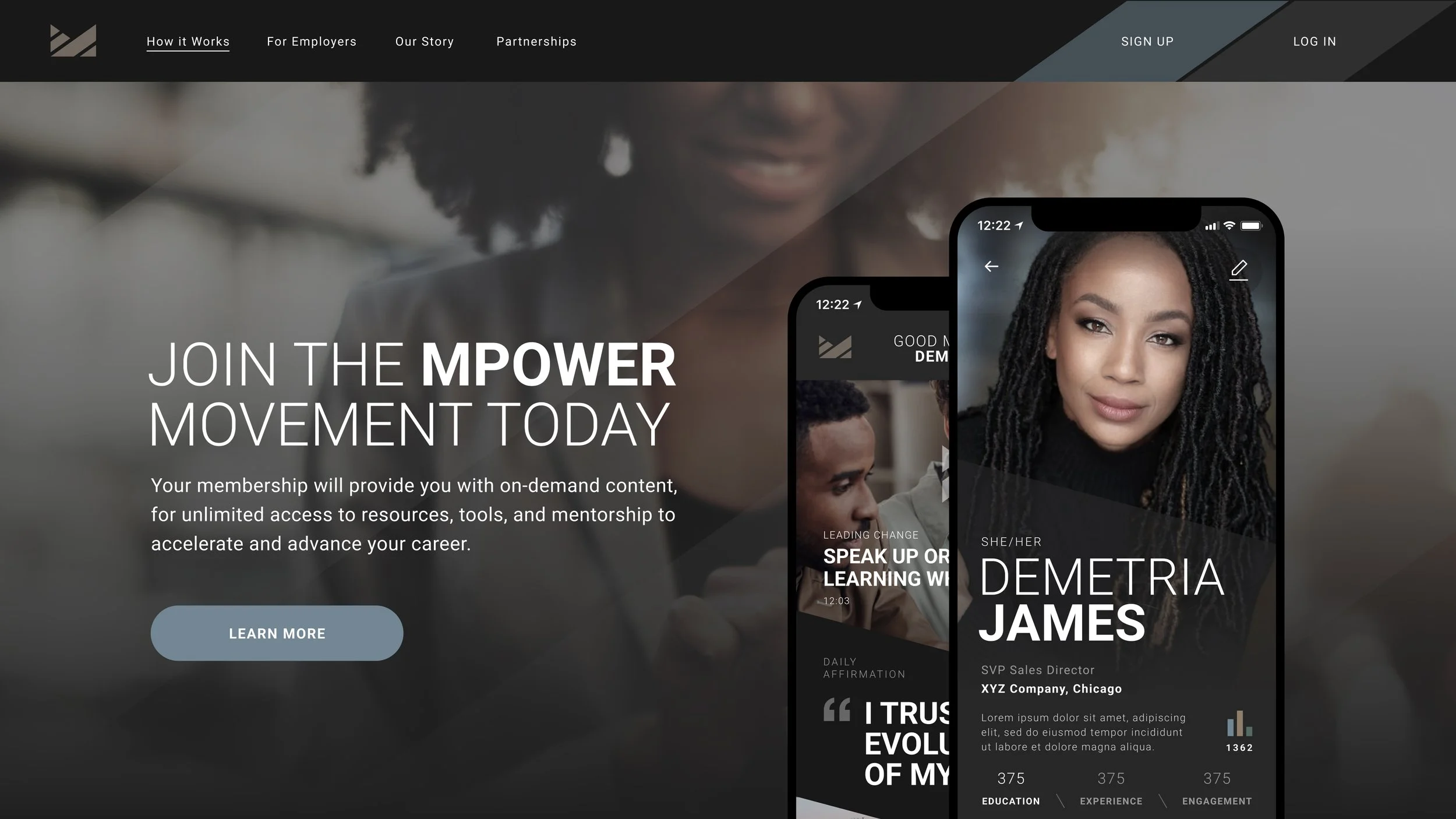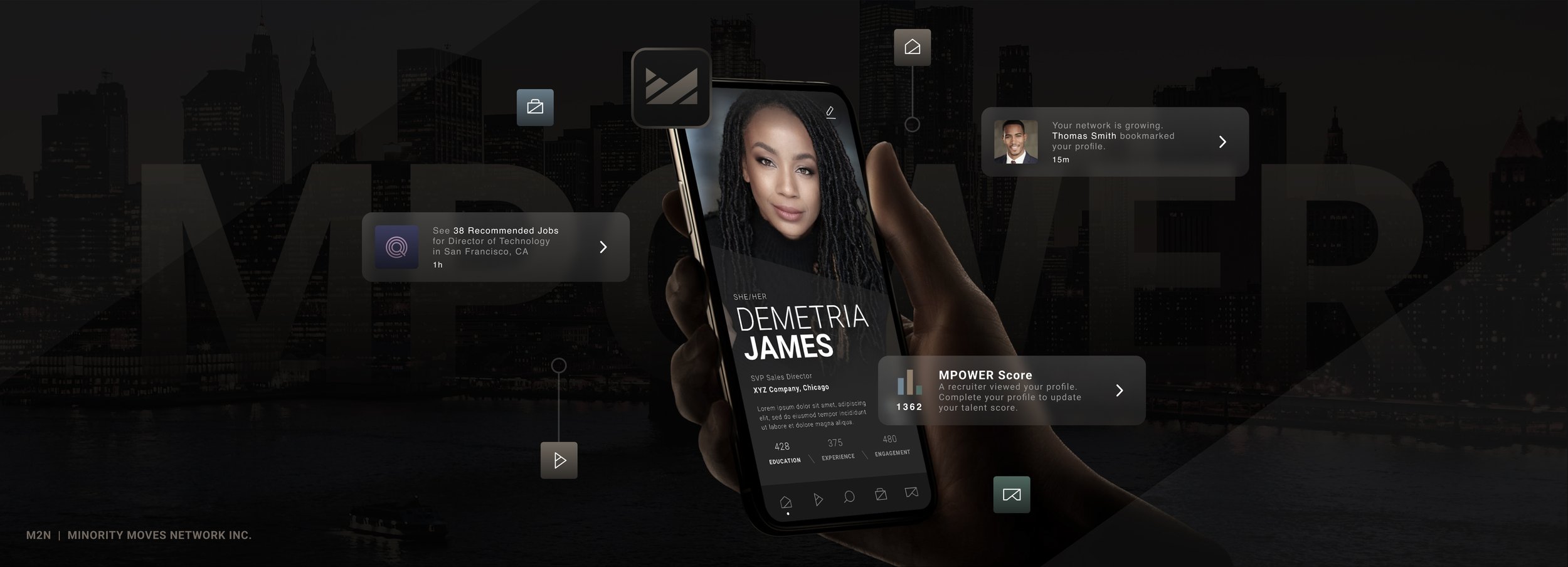 Founded to promote equity in workforce development, M2N (Minority Moves Network) focuses on maximizing access and opportunities for underestimated professionals. I partnered with their team to design MPOWER, a platform that aims to revolutionize hiring practices through a skills-based approach, expand career paths, and challenge other industry-leading professional networks.