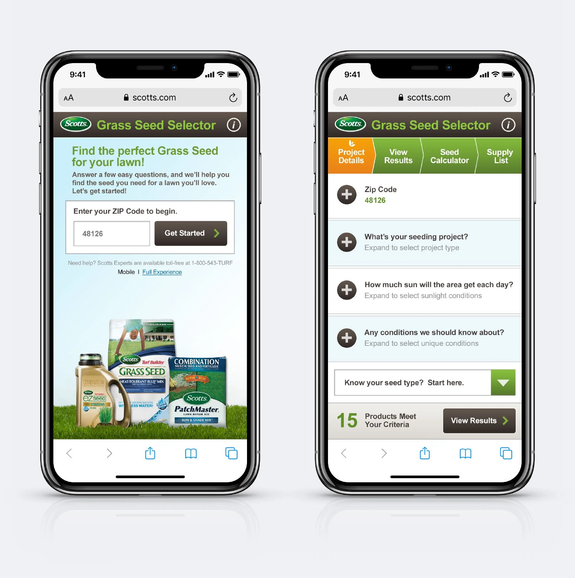 Nothing is more frustrating that buying the wrong product, getting negative results, and making multiple trips to the store, especially when a retail associate is no help. Scotts launched their responsive Grass Seed Selector to help guide consumers to a positive brand experience while in-store or at home.